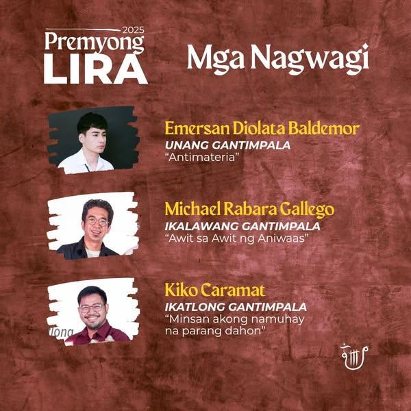 1st Prize for Poetry (Other Languages), 2025 Padya Leoncio Deriada para sa Panulatan